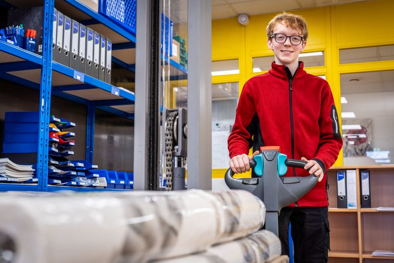 Finding the right training place is often complicated. It is often even more difficult for people with disabilities. "I tried out different areas, but none of them really appealed to me," says Leander Diembeck. His cousin, who works as a warehouse logistics specialist, introduced him to the profession and after two internships lasting several weeks in various companies, the 17-year-old was hooked. As part of the vocational preparation programme, the Bethel Vocational Training Centre (BBW) was then able to offer him a place on the new warehouse assistant apprenticeship in summer 2024: A perfect match for Leander Diembeck.