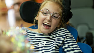 Ella liebt Lametta. Ihre Mutter hat meist eine glitzernde Girlande dabei. Wenn sie mit ihr wedelt, reagiert Ella mit einem Lächeln. An guten Tagen gluckst das Mädchen vor Freude und lacht laut. Auch wenn Ella im Buggy über seichte Waldwege geschoben wird, ist sie ganz entspannt. Sonne lugt durch die Blätter, und kleine Lichtsprenkel tanzen auf ihrem Gesicht. Deshalb ist der Snoezelen-Raum in dem mit Spenden finanzierten Kinder- und Jugendhospiz Bethel wie gemacht für die Zwölfjährige.