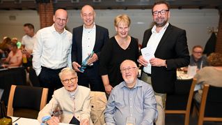 Bielefelds Sozialdezernent Ingo Nürnberger, der stellv. Vorstandsvorsitzender der v. Bodelschwinghschen Stiftungen Bethel Pastor Dr. Bartolt Haase, Kirsten Hopster und Marco Eltner, Vorsitzender der Arbeitsgemeinschaft der Wohlfahrtsverbände (hinten v.l.n.r.) sprachen Pflegenden Angehörigen wie Waltraud Salberg und Klaus-Dieter Miller stellvertretend ihren Dank und ihre Wertschätzung aus.