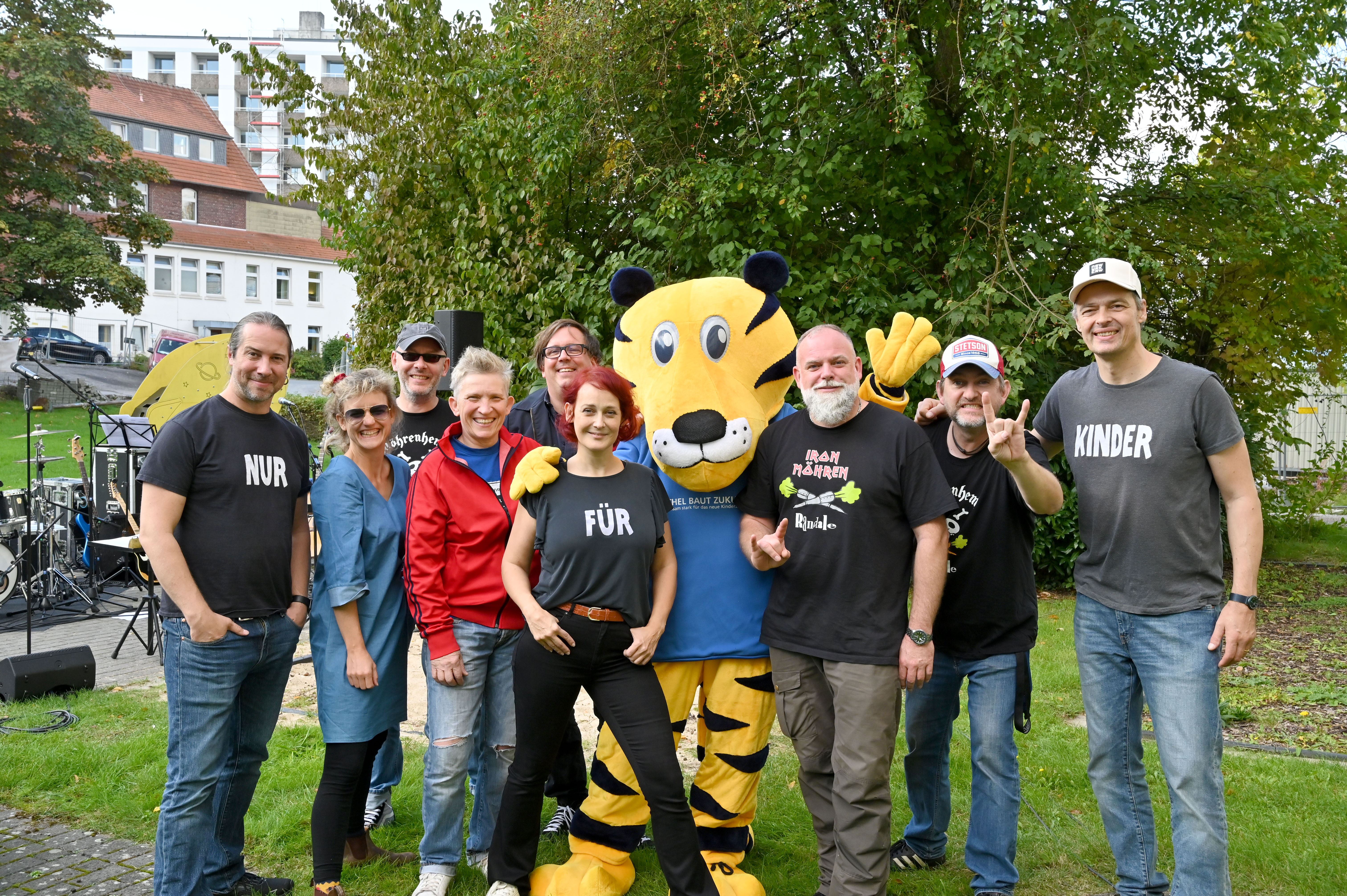 Bielefeld-Bethel. Randale, 3Berlin, Suli Puschban und Kiri Rakete: Eigentlich wären die vier Kinder-Musikbands zehn Tage mit ihrem Kinder-Musikfestival „on Tour“ gewesen – aber Corona hat auch durch diese Rechnung einen Strich gemacht. Deshalb waren noch Termine frei, und das Festival machte Stopp am Kinderzentrum des Evangelischen Klinikums Bethel (EvKB) – natürlich mit Corona-Sicherheitsabstand. Dem Publikum auf den Balkonen der Patientenzimmer oder direkt an der frischen Luft im Klinikgarten machte der Gig, den das Betheler Krankenhaus für seine Patienten gebucht hatte, sichtlich Spaß und tat den Kindern gut. Auch die Mitarbeitenden der Klinik gingen zu den Liedern mit, genauso wie Sammy der Tiger, das Maskottchen des Kinderzentrums im EvKB. Für ihn gibt es jetzt einen eigenen Randale-Song, der bei diesem Event Premiere feierte: „Sammy der Tiger aus der ersten Liga!“. Alle Songs der vier Kinder-Bands wurden gemeinsam gesungen. „Das macht es spannend und besonders“, so Randale-Frontmann Jochen Vahle.