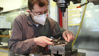 Wenn Stephan Sachse in der Werkstatt steht, zählt jeder Zehntelmillimeter – nur so passen die Einzelteile aus massivem Metall hinterher genau zusammen. Der 46-Jährige arbeitet im Vorrichtungsbau, der zu Bethels Werkstätten für Menschen mit Behinderungen gehört. Hier werden Hilfsmittel und Werkzeuge hergestellt, die den Menschen im Alltag die Arbeit erleichtern. Dabei kommt moderne Technik zum Einsatz – vom 3D-Drucker bis zur computergesteuerten Fräsmaschine.
