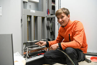 Die Arbeiten an der Fassade sind bald abgeschlossen, jetzt schon sieht der Bau von außen schon sehr komplett aus. Innen ist das anders: Wer das Gebäude durch den Haupteingang betritt, wird von einem dreigeschossigen Baugerüst empfangen. Mit dem Baufortschritt zeigt sich Jürgen Käller dennoch zufrieden. Viele aufwändige Arbeiten, etwa die Installation der Lüftungstechnik oder der komplexen Hauselektronik, sind bereits abgeschlossen oder auf einem guten Weg. Jetzt kommen Estrich und Putz an die Reihe, dann werden die Zwischendecken eingezogen, die Rohre, Kabelschächte und Leitungen verbergen.